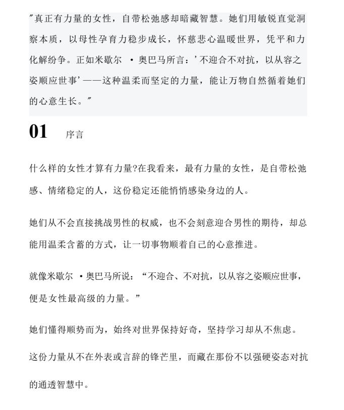 真正有力量的女性,自带松弛感却暗藏智慧。她们用敏锐直觉洞察本质,以母性孕育力稳步成长,怀慈悲心温暖世界,凭平和力化解纷争。正如米歇尔·奥巴马所言:’不迎合不对抗,以从容之姿顺应世事’一一这种温柔而坚定的力量,能让万物自然循着她们的心意生长。